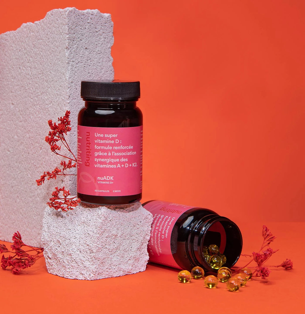 Vous cherchez une vitamine D de qualité prête à prendre soin de votre corps de manière simple et efficace ? Ne cherchez plus, la formule de vitamine D nuADK de nutriting est la solution qu'il vous faut !